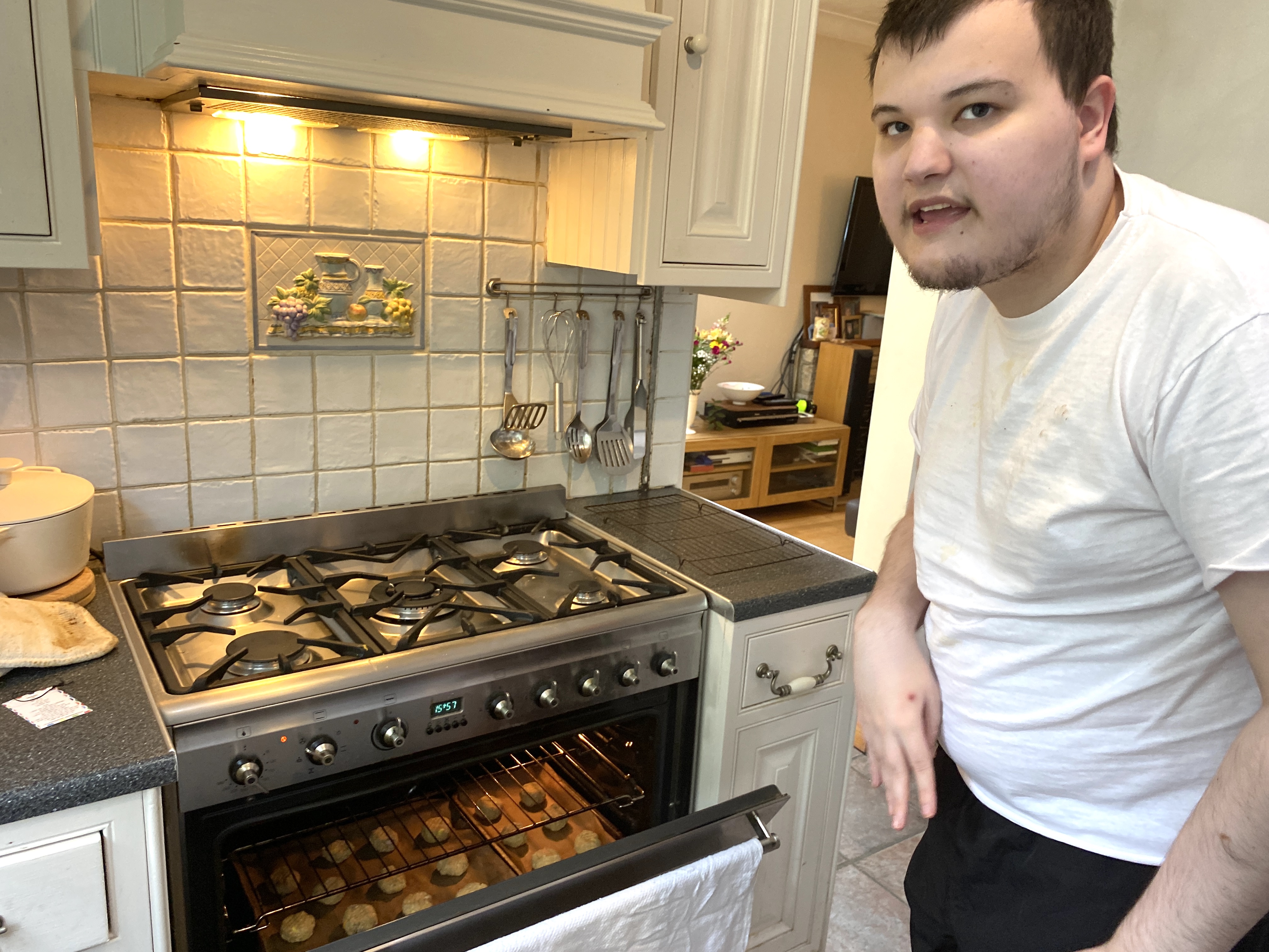 This was a great recipe to make, and once our cookies had cooled down a little we hungrily munched one each. Mum had one too and said they were great! Well done James, another baking win!