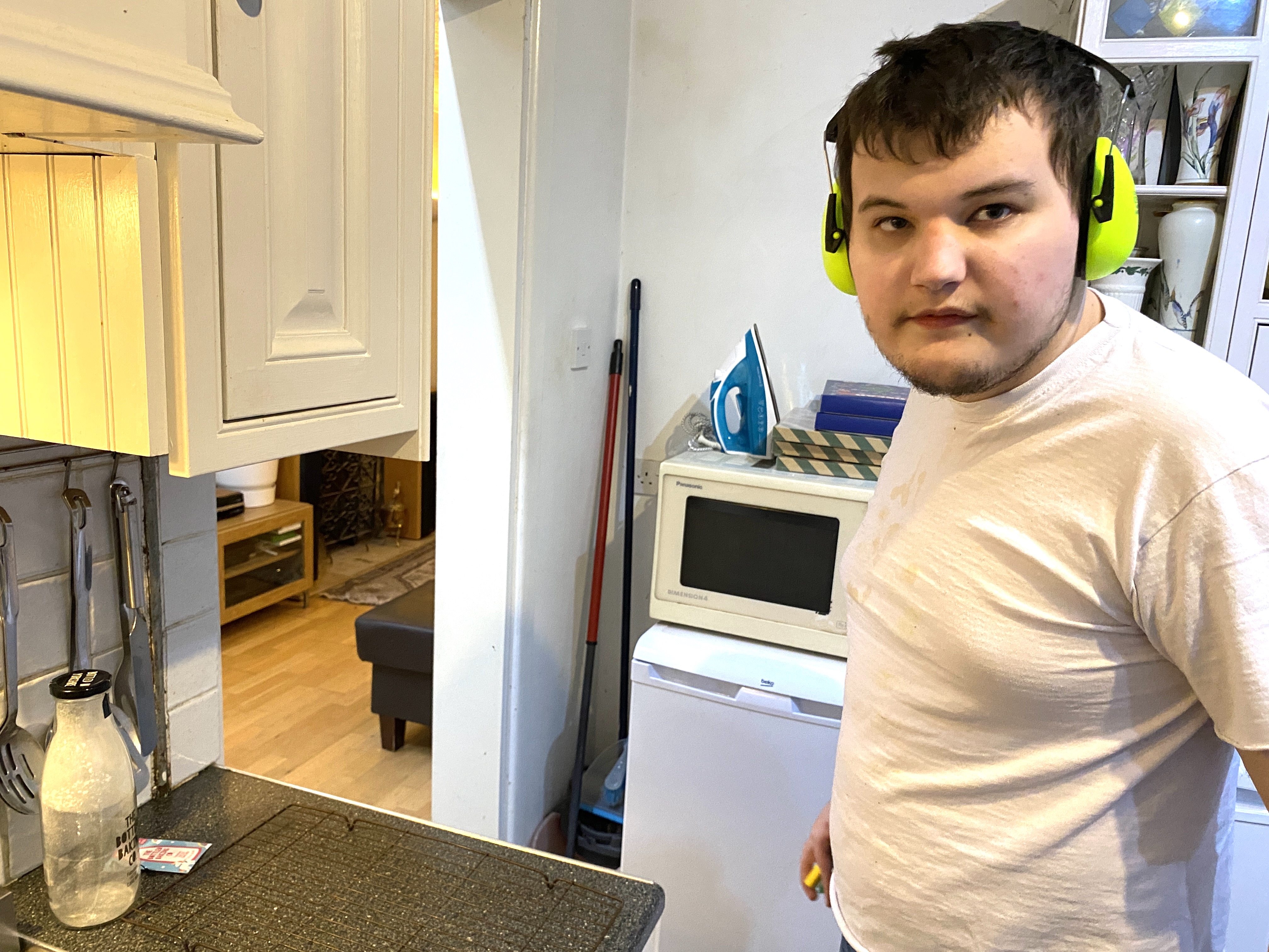 James came out to the kitchen to supervise the baking tray going into the oven, which was Dad’s job as the oven is ‘Hot! Hot! Hot!’ A final check that all was done before he left the kitchen. The hardest part was waiting the 27-30 minutes for the cake to bake!