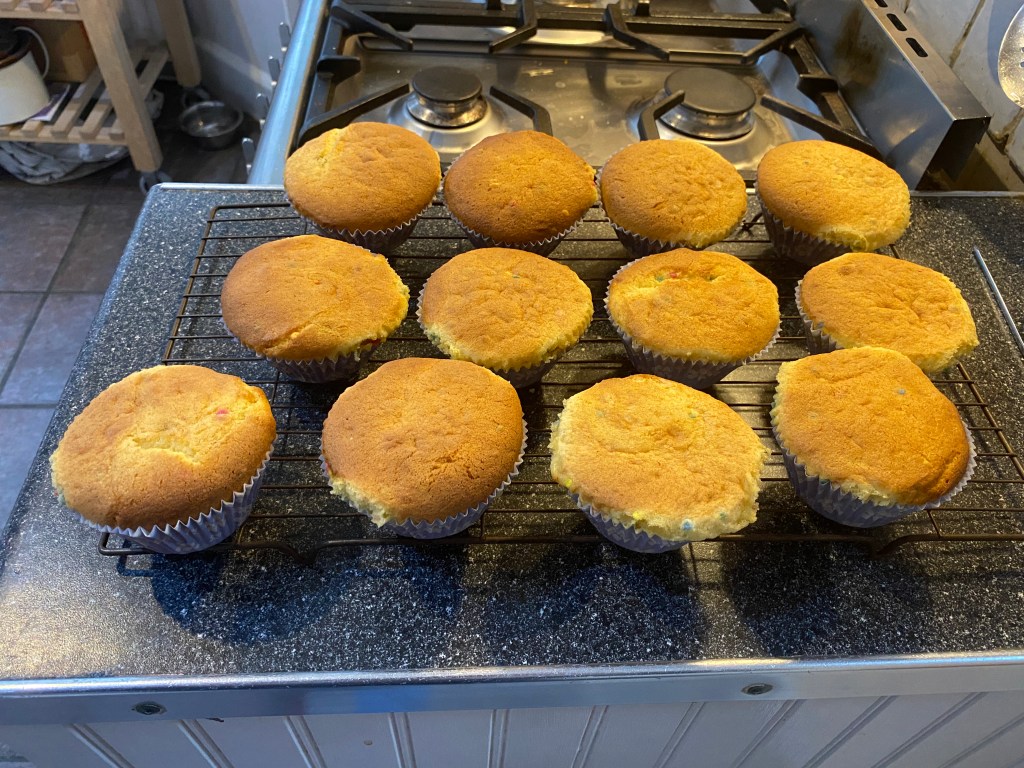 These muffins/cupcakes were great fun to make, with the different stages all giving us plenty of things to do! Lots of things for James to lick clean too! Yummy!