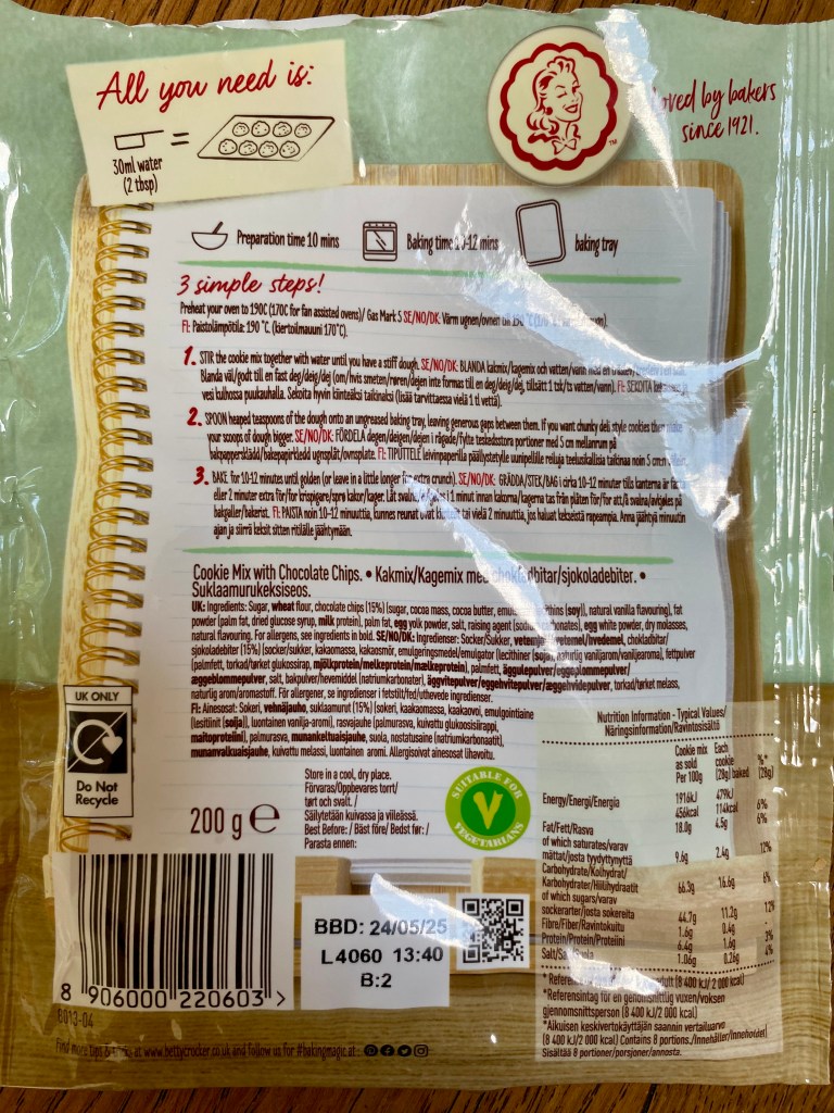 The Chocolate Chip Cookie Mix instructions from ‘Betty Crocker’