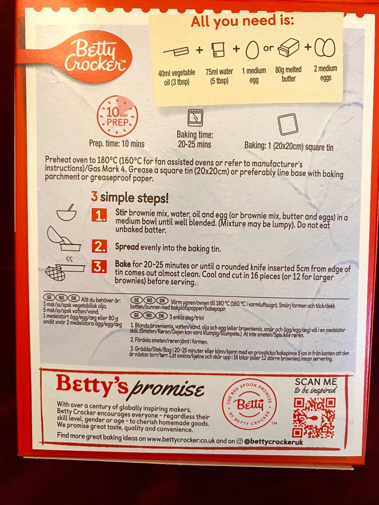 The ‘Betty Crocker’ Chocolate Fudge Brownie Mix is such a favourite that we thought we would have another go today! It was really scrummy before, and even more delicious to make again!